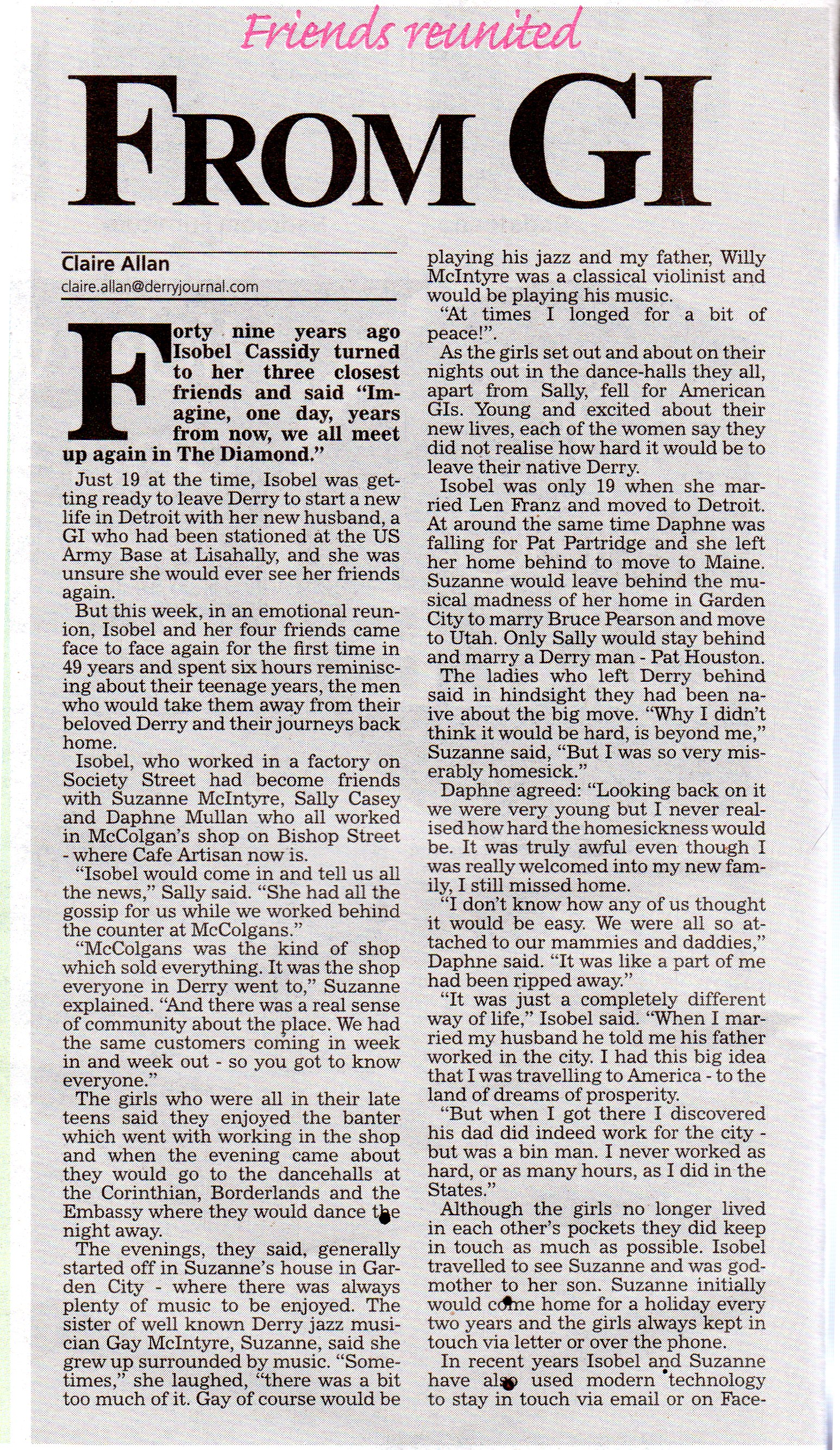 The following article published 6 May 2011 in the Derry Journal was submitted by Isobel Cassidy
