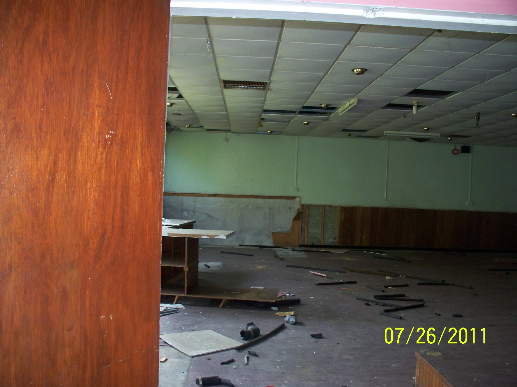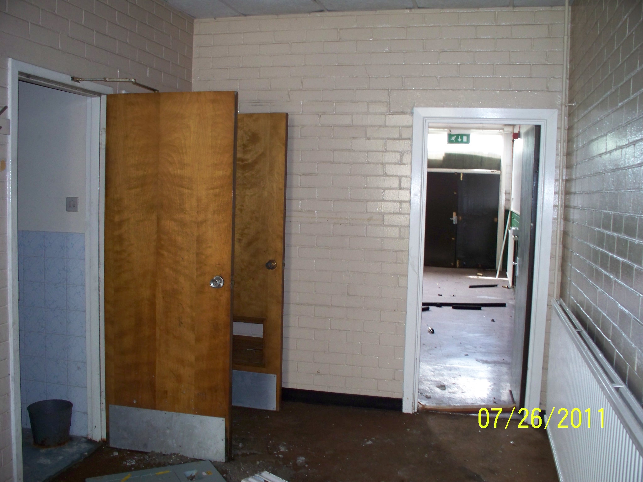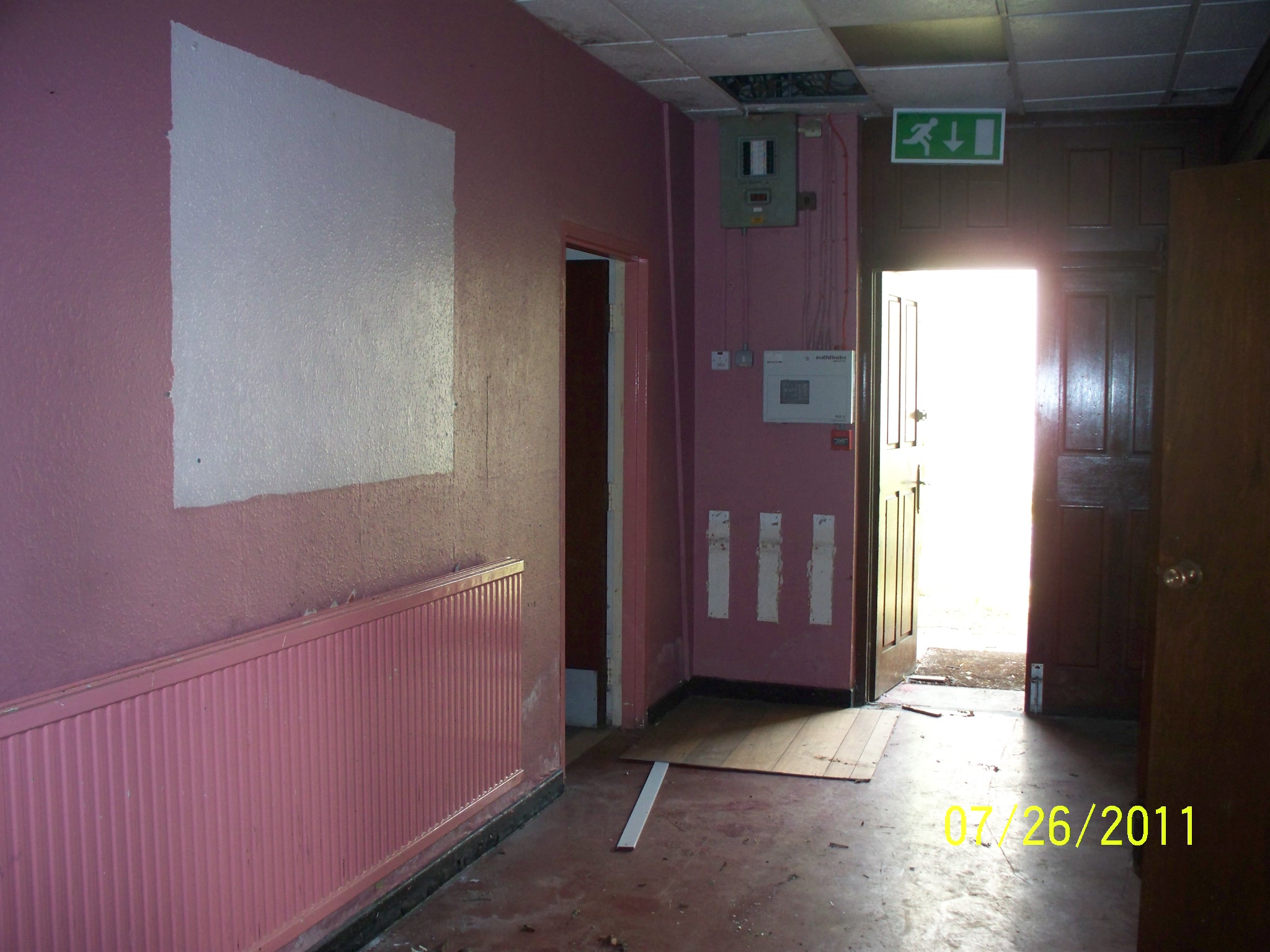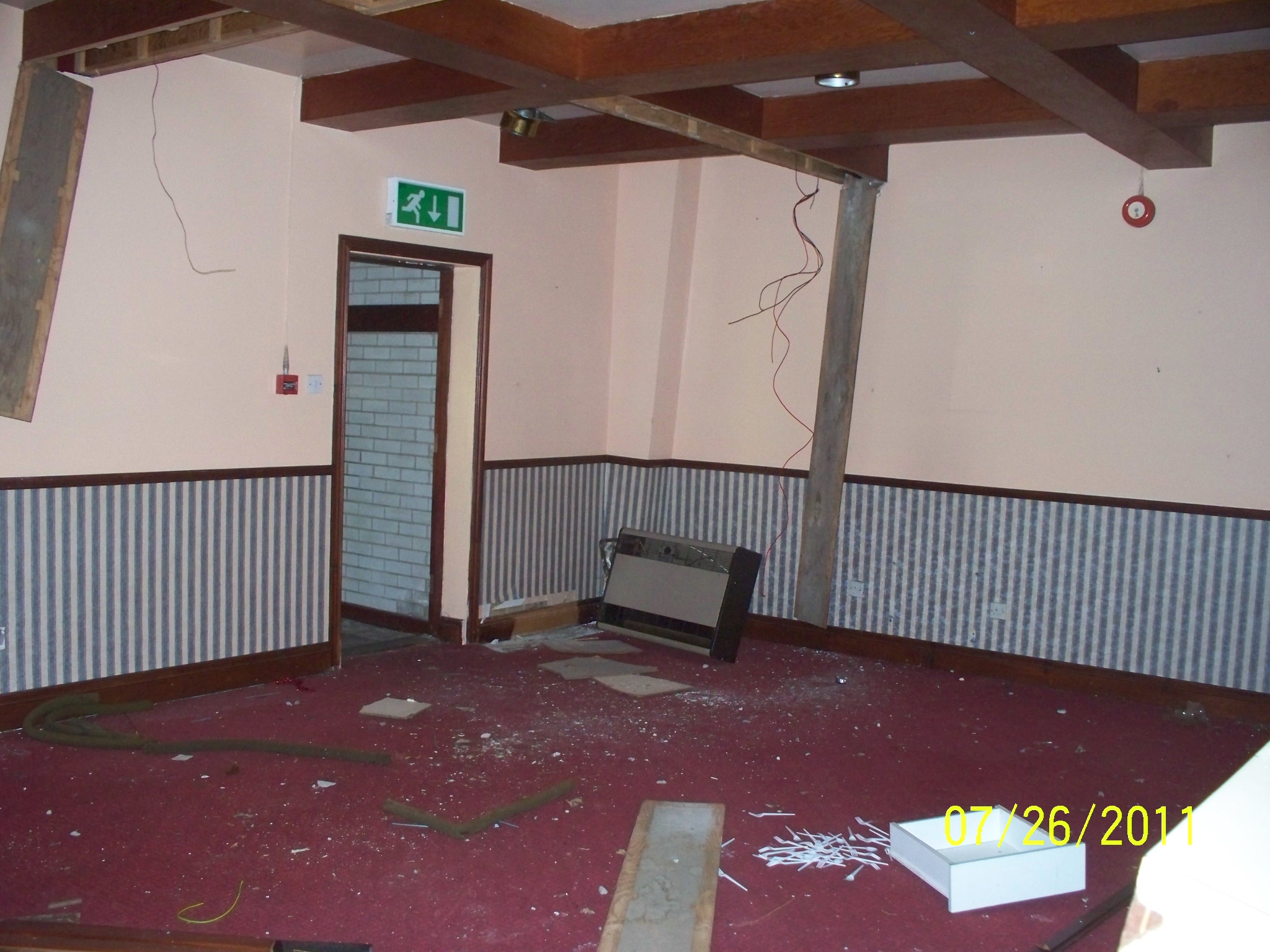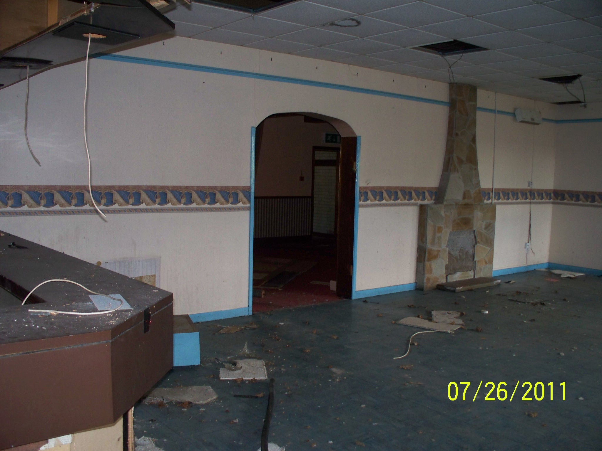 EM Club Stag Bar - Wall where dart boards hung and to right the doors to dance floor area