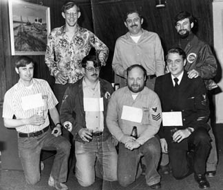L-to-R: Steve Mertz, Bryan Dunn, Dane Judd, Roy Seddon (Coach), Gary Whitehurst, Rick Cavazos, John Reigle, Dave Tochinni.
