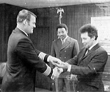 John 'Sonny' Deeney receiving 5-year Service Pin Award from Capt. Lynch Looking on is Chief Jay Williams Circa: 1969