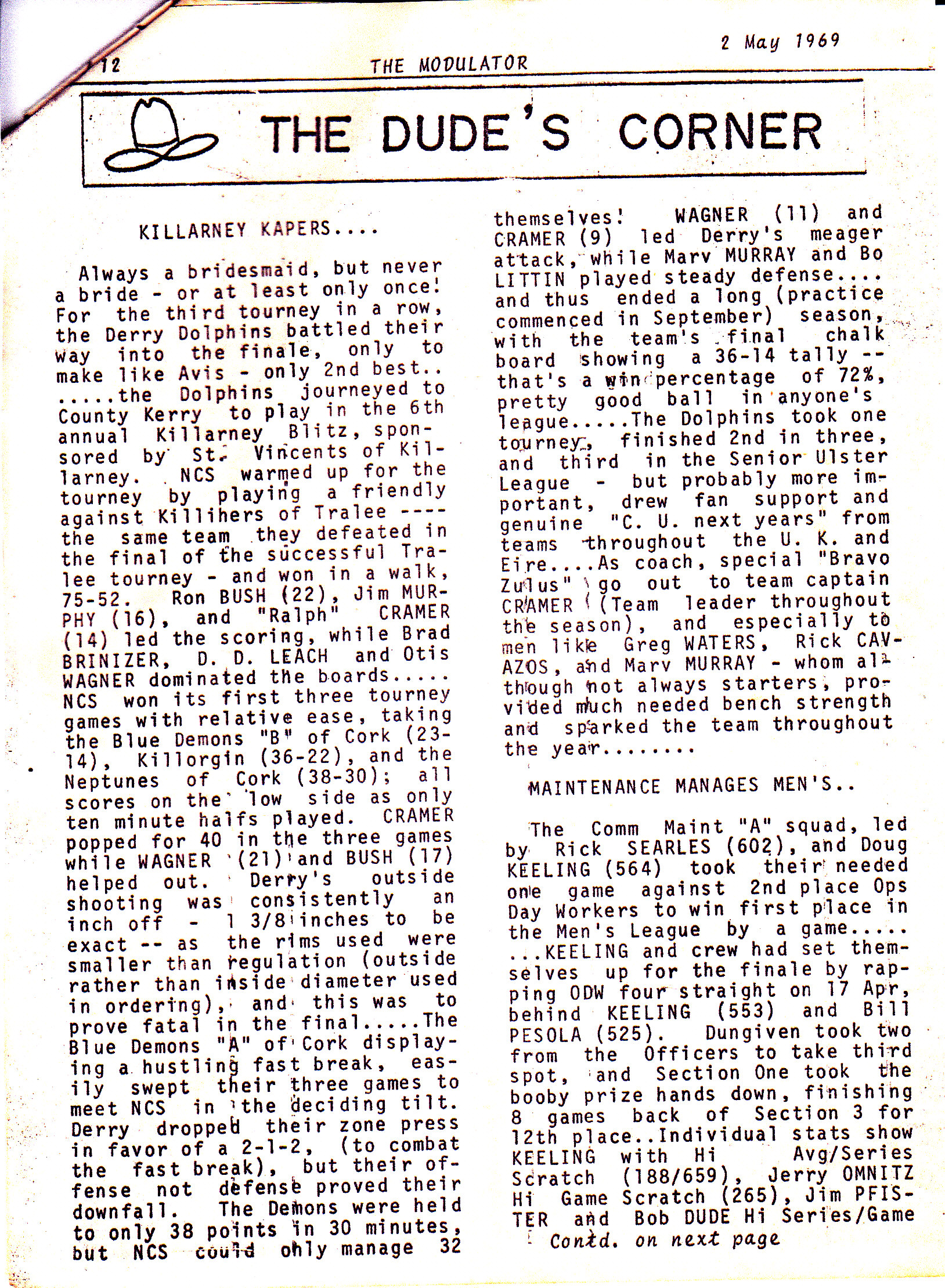 Kilarney Basketball Trip (L-R) - Wagner, Rory the Irish Wolfhound, Jeff Leach - Circa Feb 1969