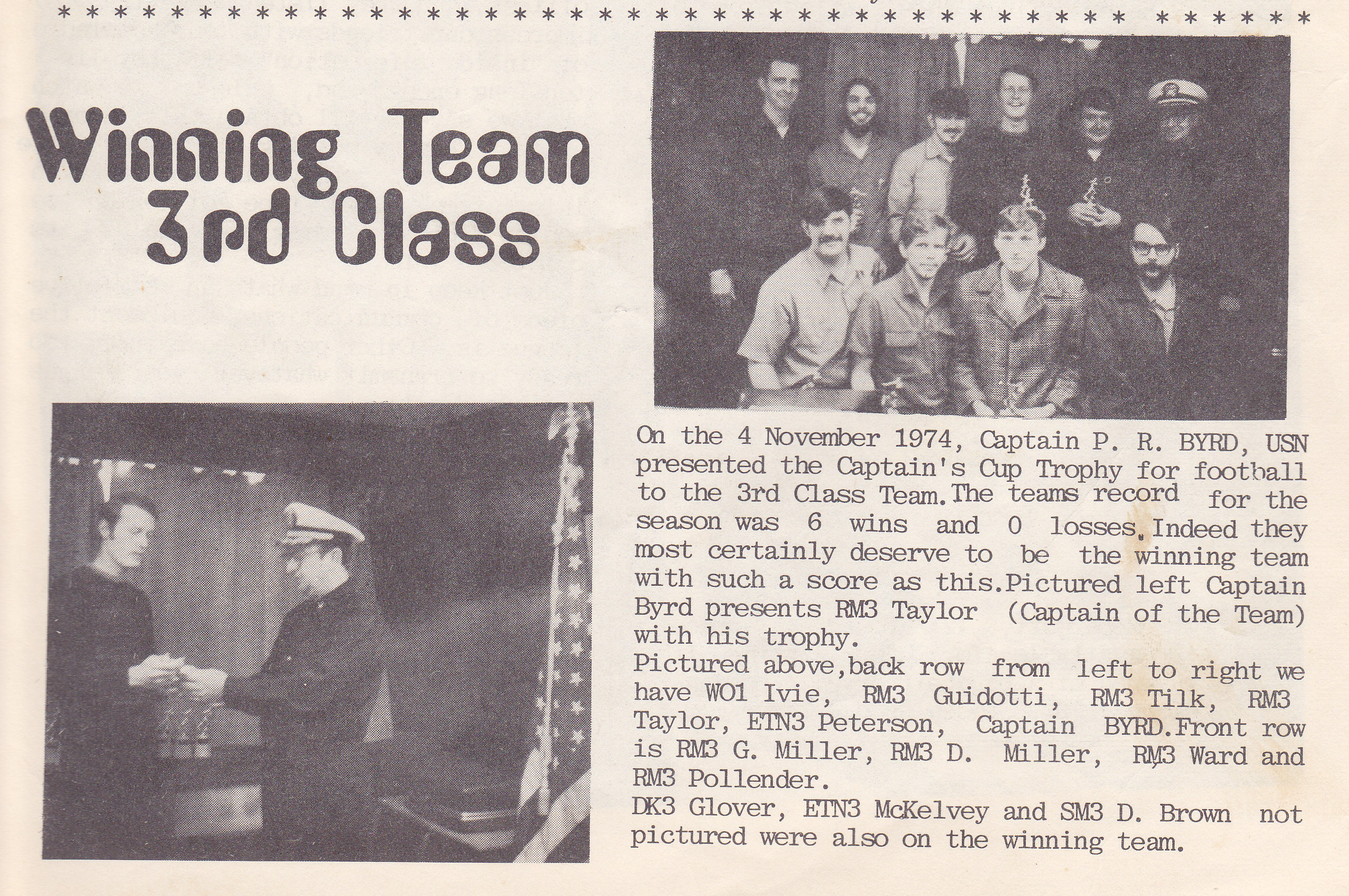 Captain's Cup Football Winning Team 3rd Class - Modulator - Dec 74