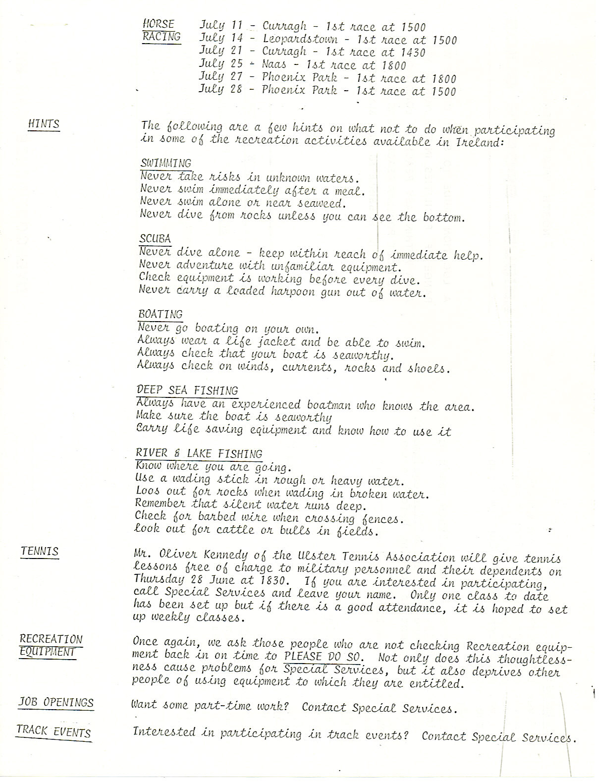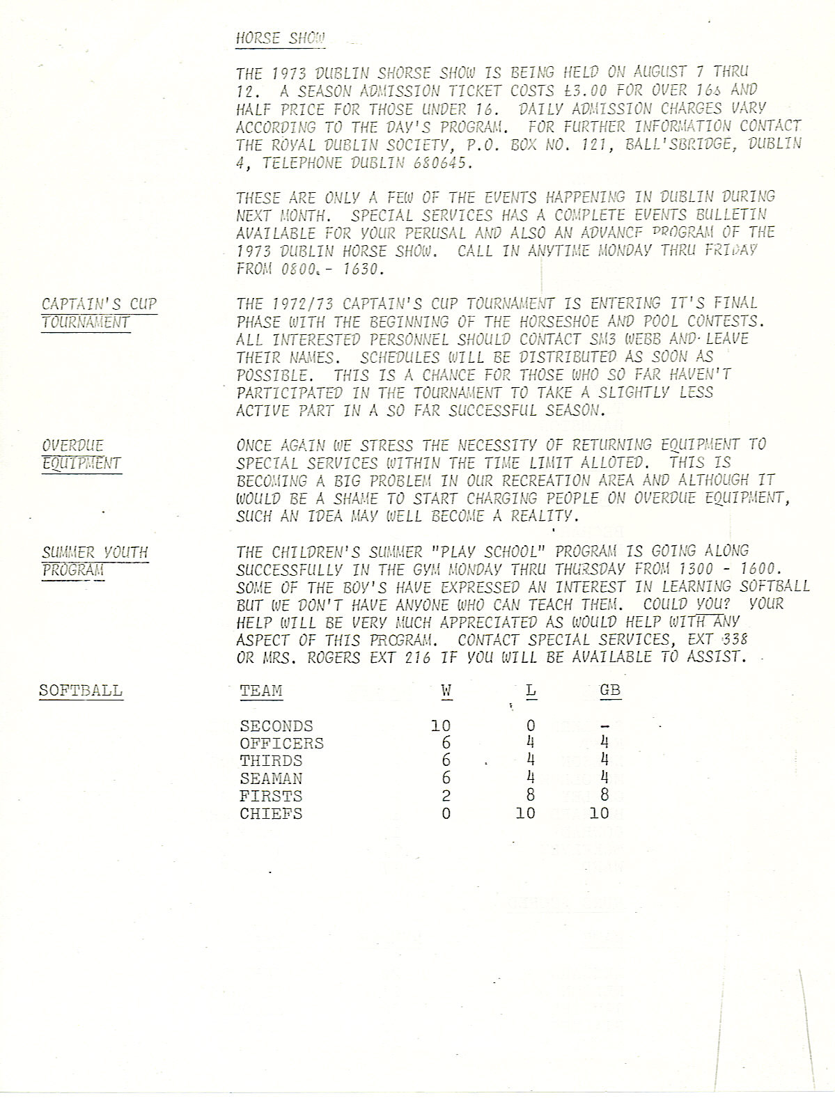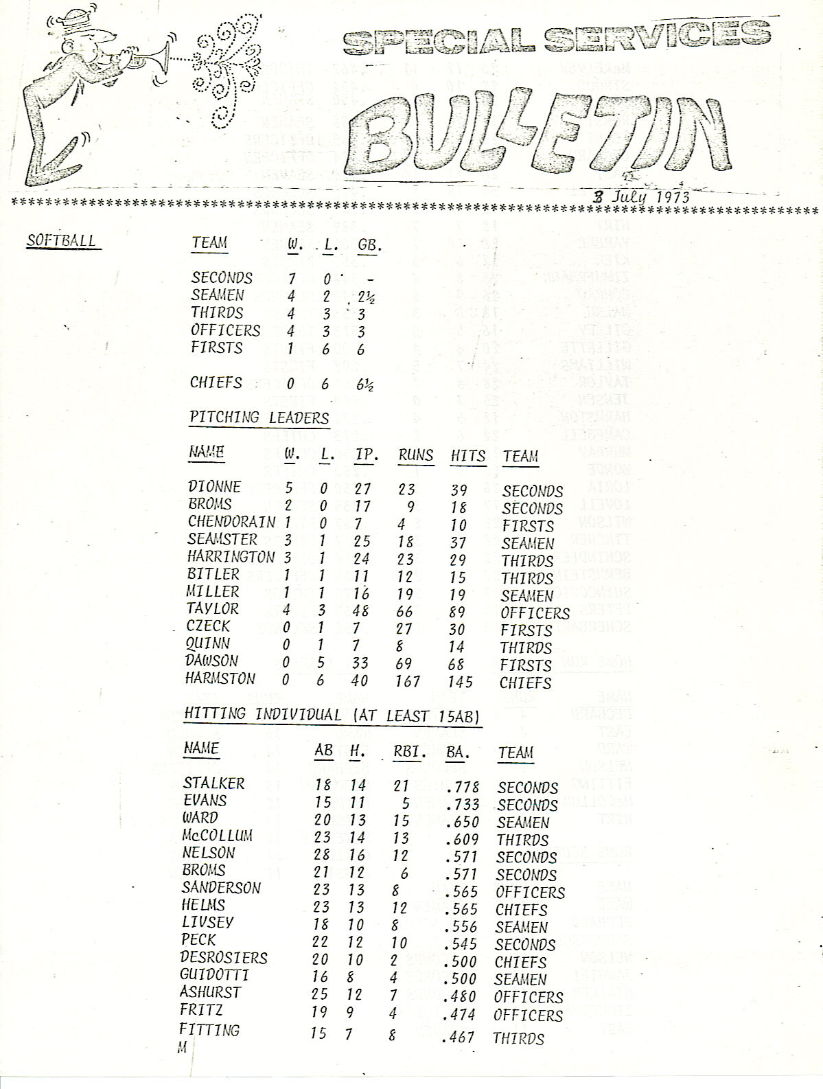 Special Services Bulletin - 3 Jul 73