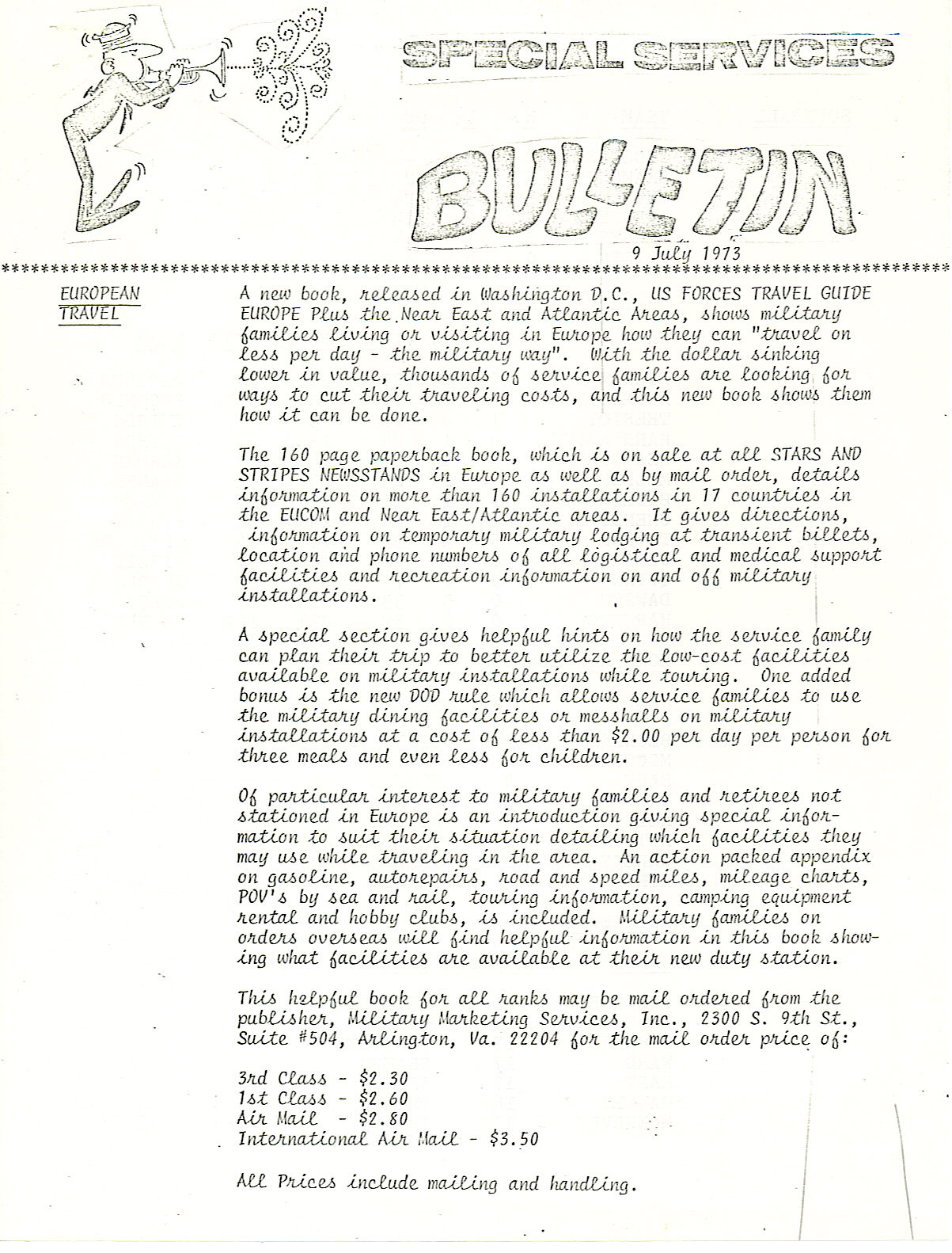 Special Services Bulletin - 9 Jul 73