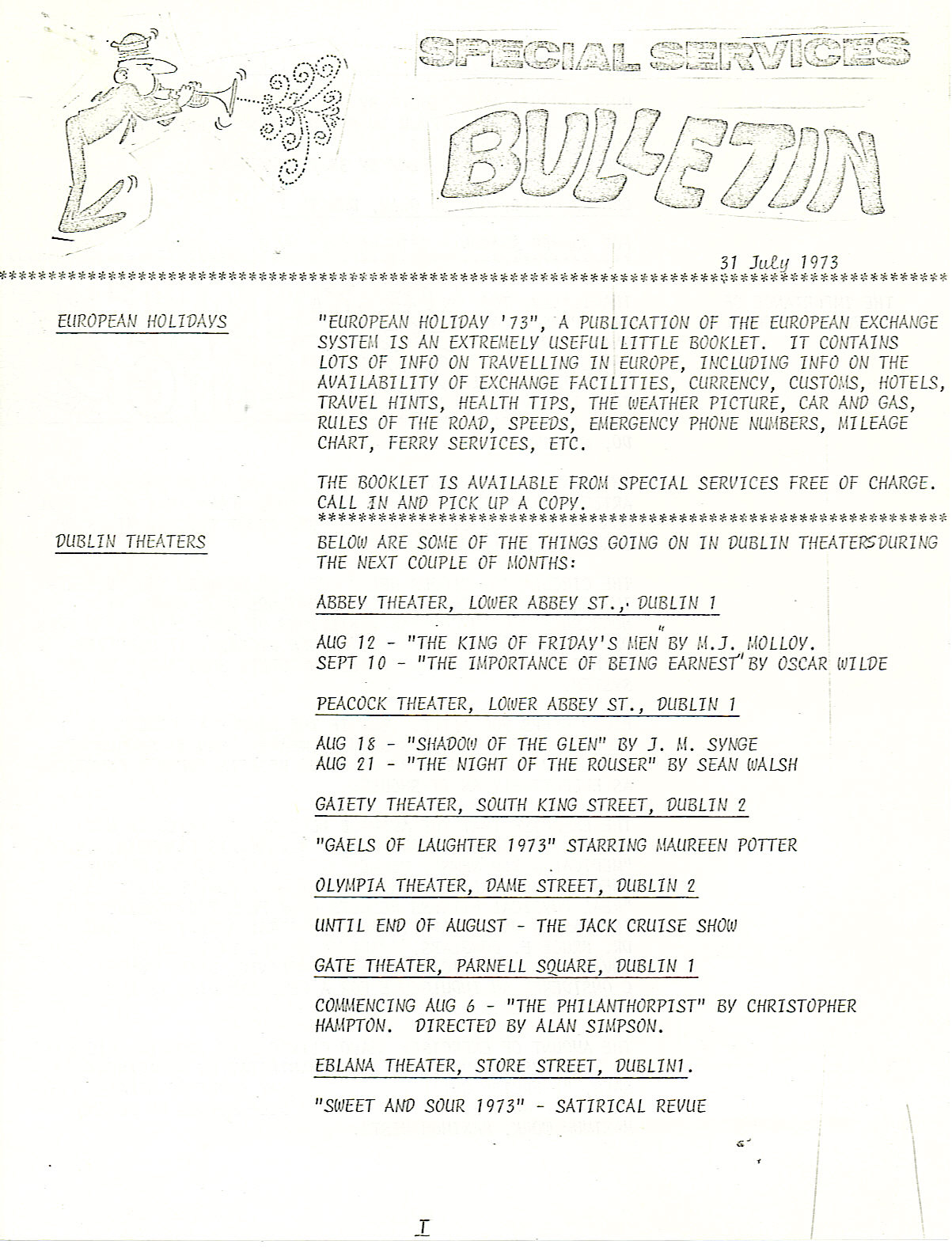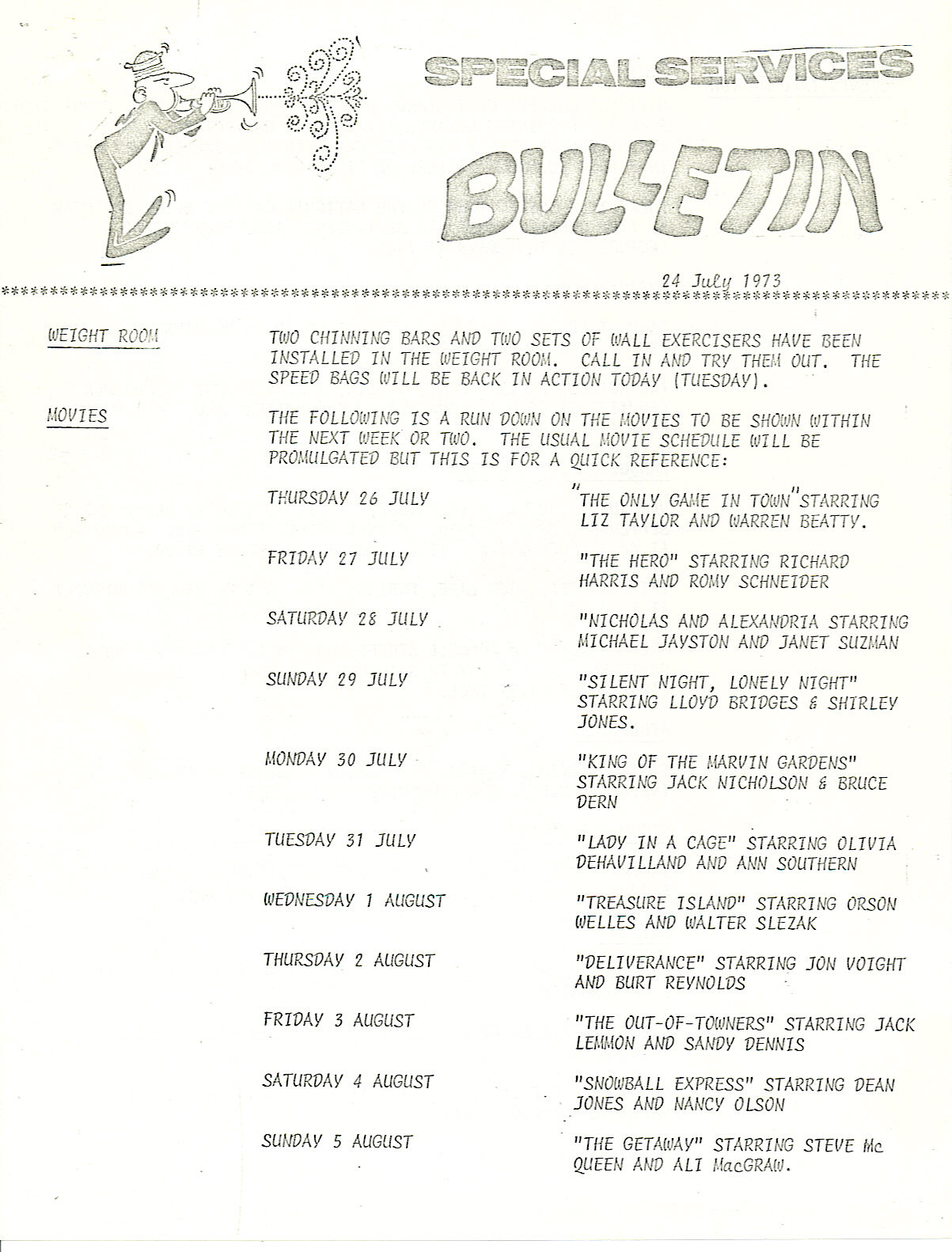 Special Services Bulletin - 31 Jul 73