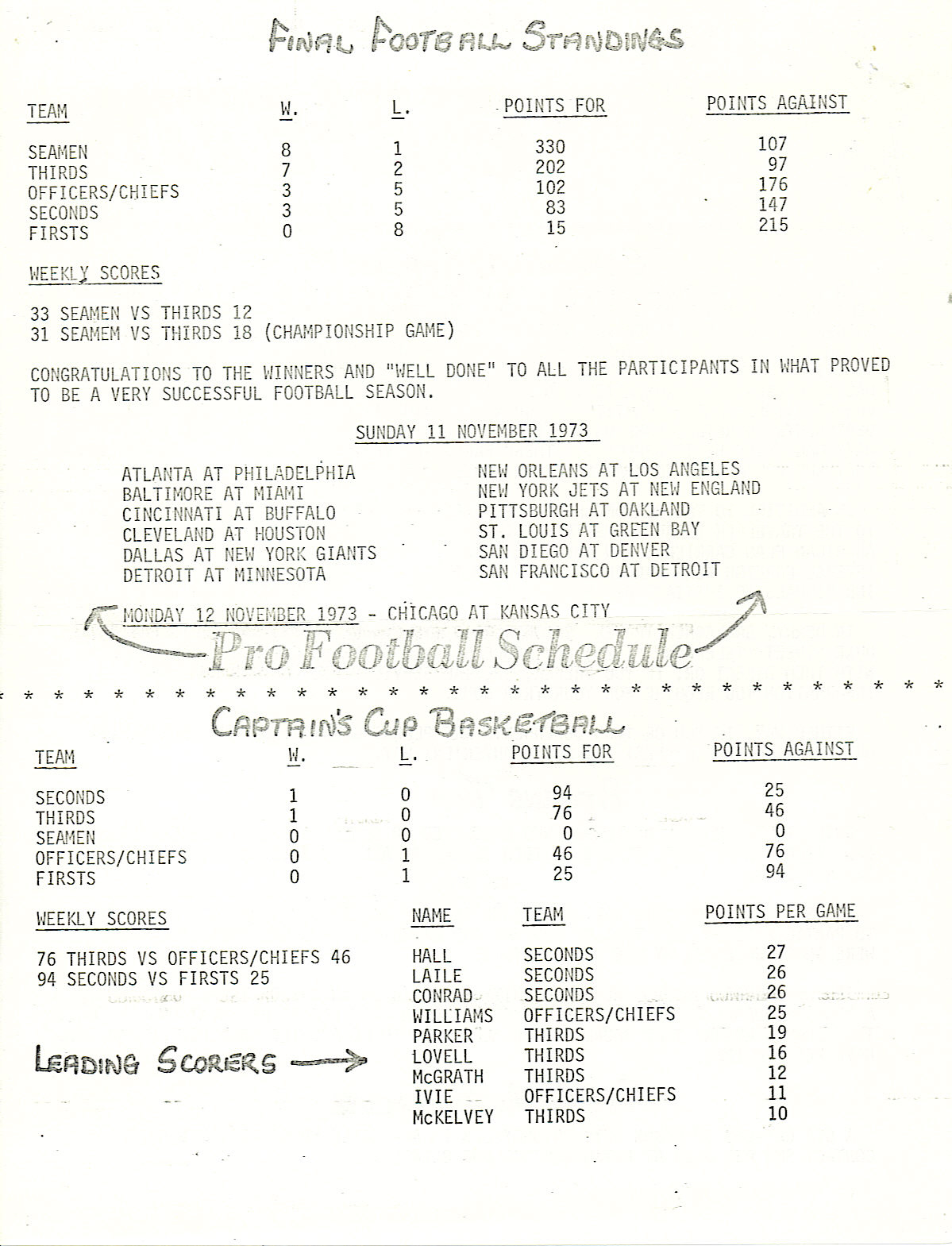 Special Services Bulletin - 9 Nov 73