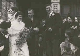 Seabee (SW1) Joseph 'Pat' Yerashunas, with his Derry Bride, Anna Guns Circa: 1952. The Base CO, Lt. F.G. Wilson, is shown between the newlyweds.