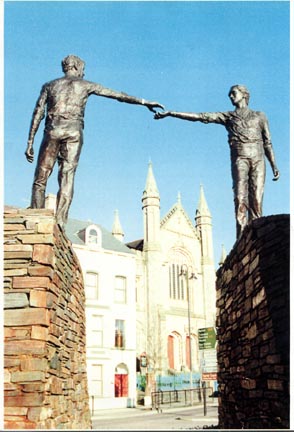 Statue at the roundabout at the Cityside end of Craigavon Bridge