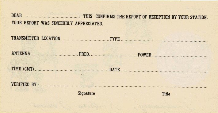QSL Confirmation, Confirming Report of Receptions, Circa 1974
