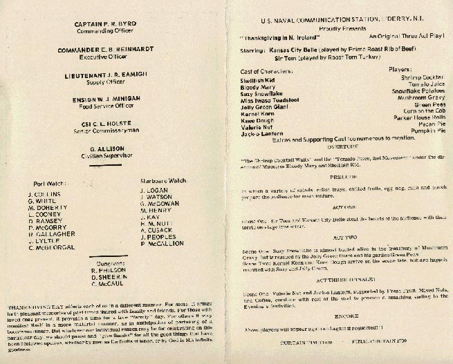 Thanksgiving Dinner Menu, Base Mess Hall, 1974