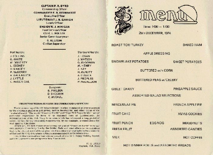 Christmas Dinner Menu, Base Mess Hall, 1974