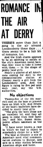 Derry Newspaper Article about US Sailors Marrying Local Women, Circa: Early 1970's