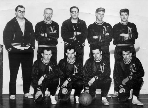 NCS Londonderry Change of Command Ceremonies, 1962 1965 NCS Londonderry Base Basketball Team Front: (First name?) Moore, Chuck Pattinson, Jim 'Sully'