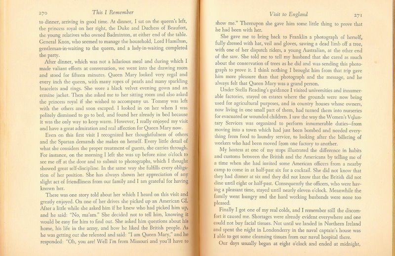 Elanor Roosevelt's visit to Londonderry from "This I Remember" pgs. 270 - 271