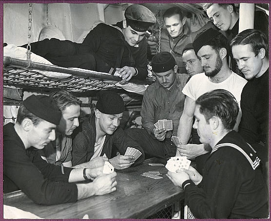 Berthing compartment of a destroyer from the first U.S. Navy convoy escort at Londonderry - January 1942