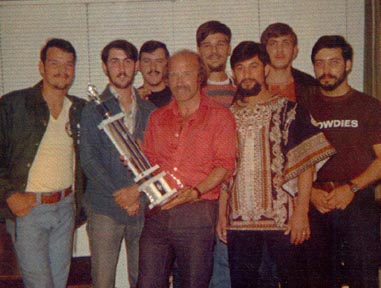 L-to-R: Steve Mertz, Bryan Dunn, Dane Judd, Roy Seddon (Coach), Gary Whitehurst, Rick Cavazos, John Reigle, Dave Tochinni.