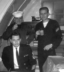 Lt. Robert Heyde, SN Jim Nugent, and YN2 Pedro Gonzales, Circa 1963.