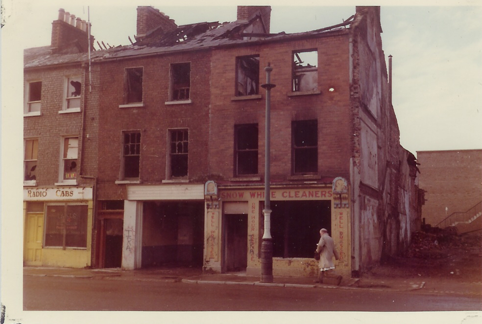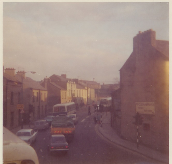 The crowded street is from workers leaving Ebrington Shirt Factory