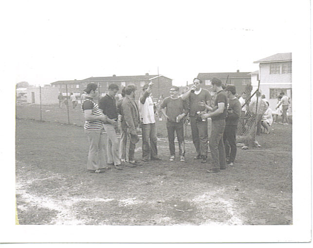 Tom Stalker - Dennis Jawgiel - Keith Nelson - Tom Conrad (hand in air) - Bill Broms - Dale Blackburn - Sage Scharbeth - Gene Peck