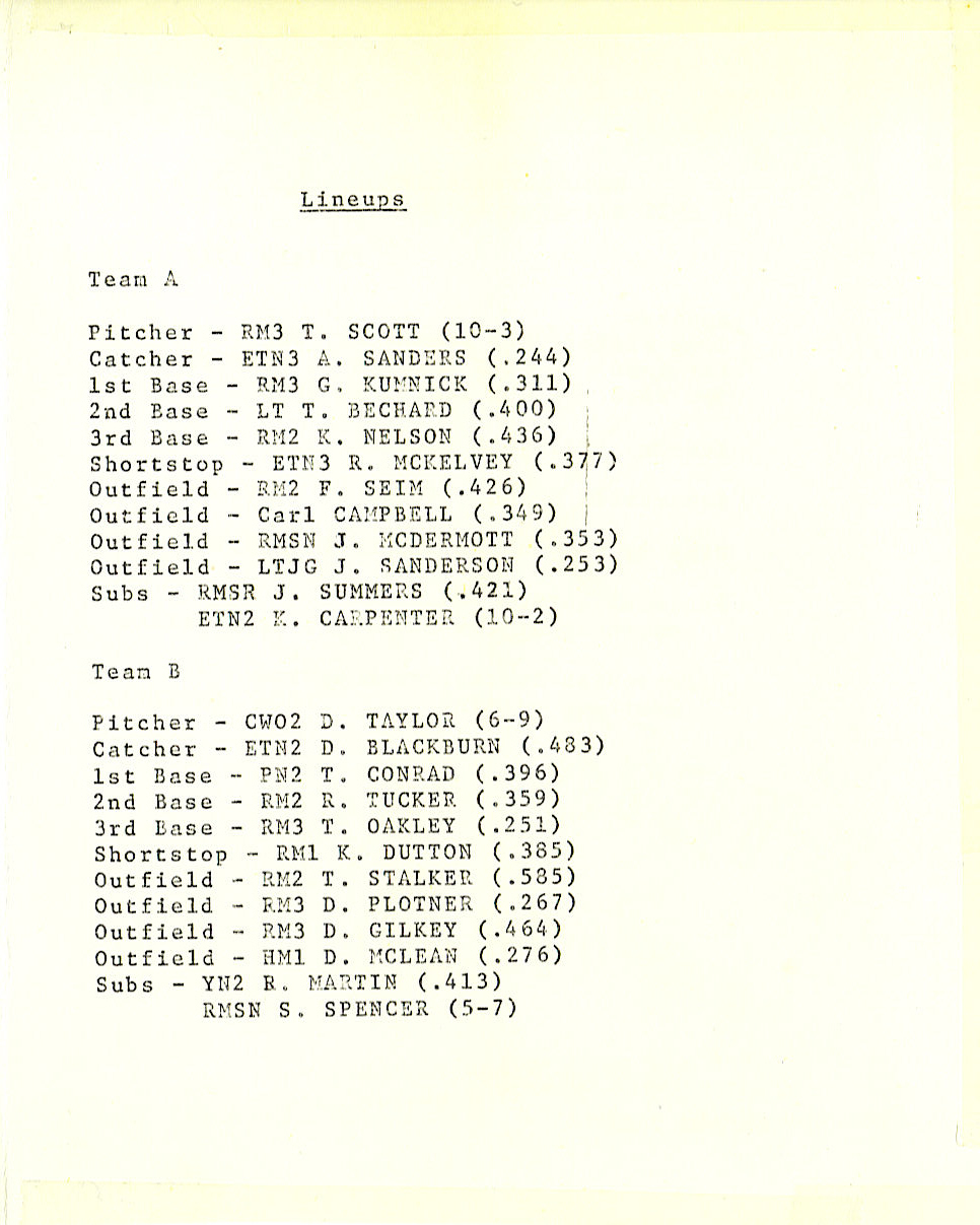 Tom Conrad 1B - Ralph Tucker 2B - Dean Taylor P - Tom Stalker CF - Jack Summers? running to first
