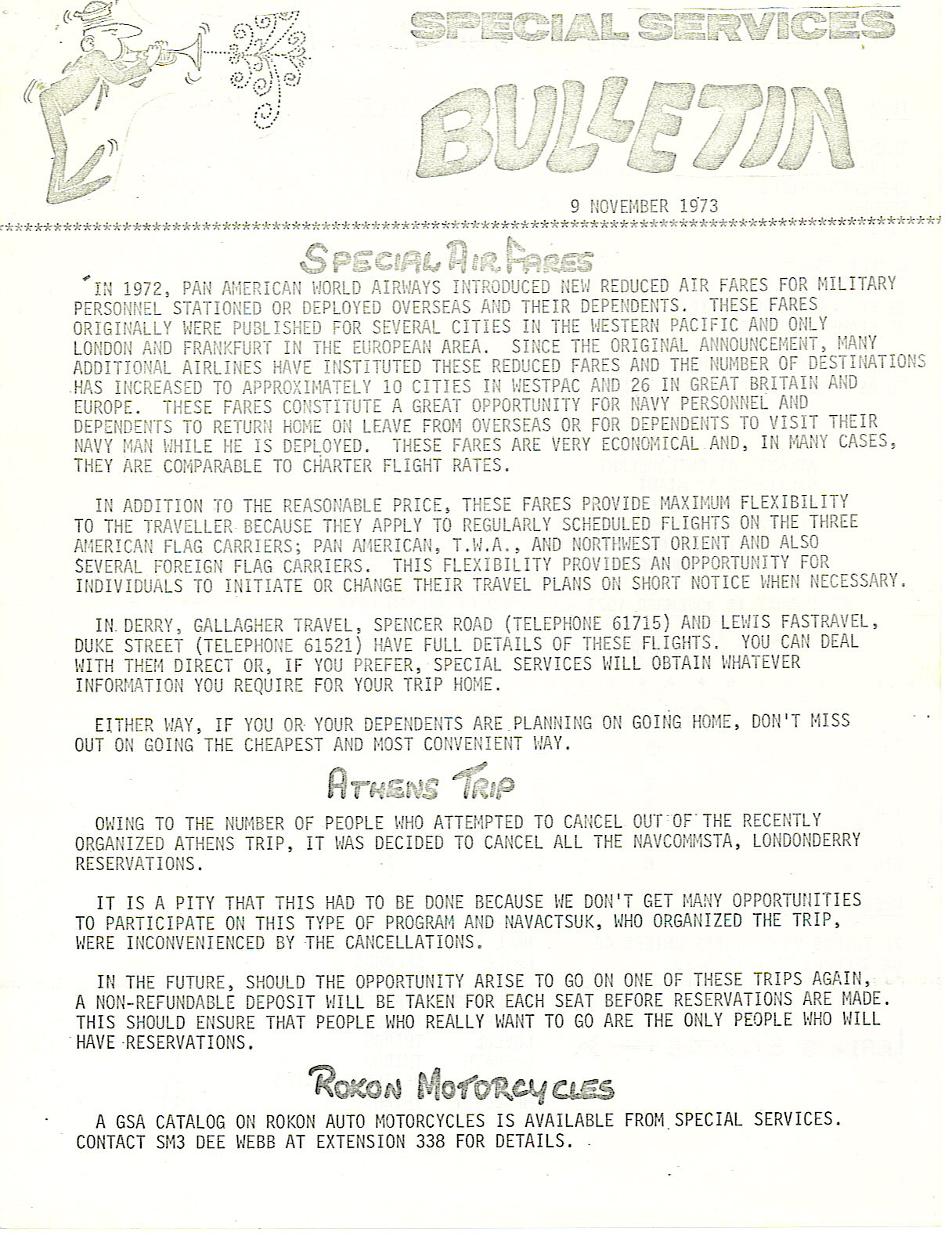 Special Services Bulletins from PN Thomas Conrad's tour 1972 - 1974